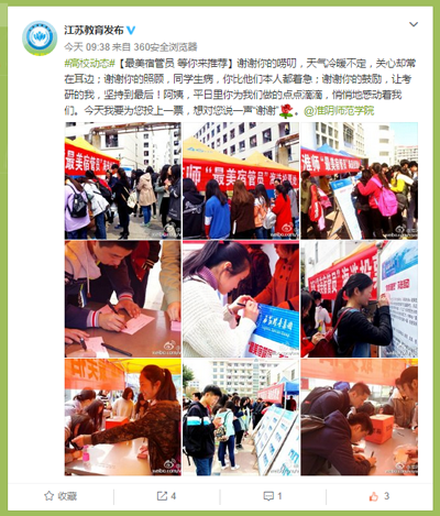 #高校动态#【最美宿管员 等你来推荐】谢谢你的唠叨,天气冷暖不定,关心却常在耳边;谢谢你的照顾,同学生病,你比他们本人都着急;谢谢你的鼓励,让考研的我,坚持到最后!阿姨,平日里你为我们做的点点滴滴,悄悄地感动着我们。今天我要为您投上一票,想对您说一声“谢谢”。@英国威廉希尔唯一官网