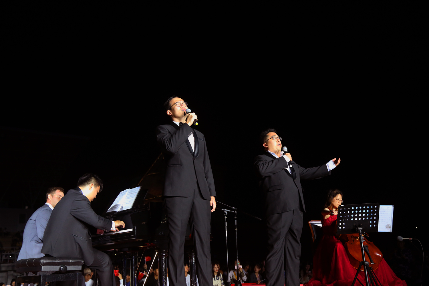 歌舞《五星红旗》大力唱响礼赞新中国、奋进新时代的青春主旋律;《我和我的祖国》歌不尽七十载祖国繁荣昌盛,演不尽七十载祖国华章巨变,用深情的歌声、激昂的精神面貌祝福祖国繁荣昌盛、永远富强;一曲笛子独奏《淮海情》,给在场的观众带来震撼心灵般的视听感受;舞蹈《水之灵》,用优美的舞姿演绎青年人志做栋梁、不负韶华的报国热情。