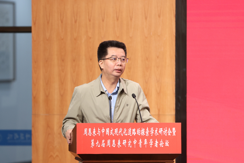 21日下午,第九届周恩来研究中青年学者论坛举行。论坛第一阶段由中国中共文献研究会周恩来思想生平研究分会副会长、恩来干部学院副院长郑超主持,第二阶段由周恩来纪念地管理局副局长施春生主持。