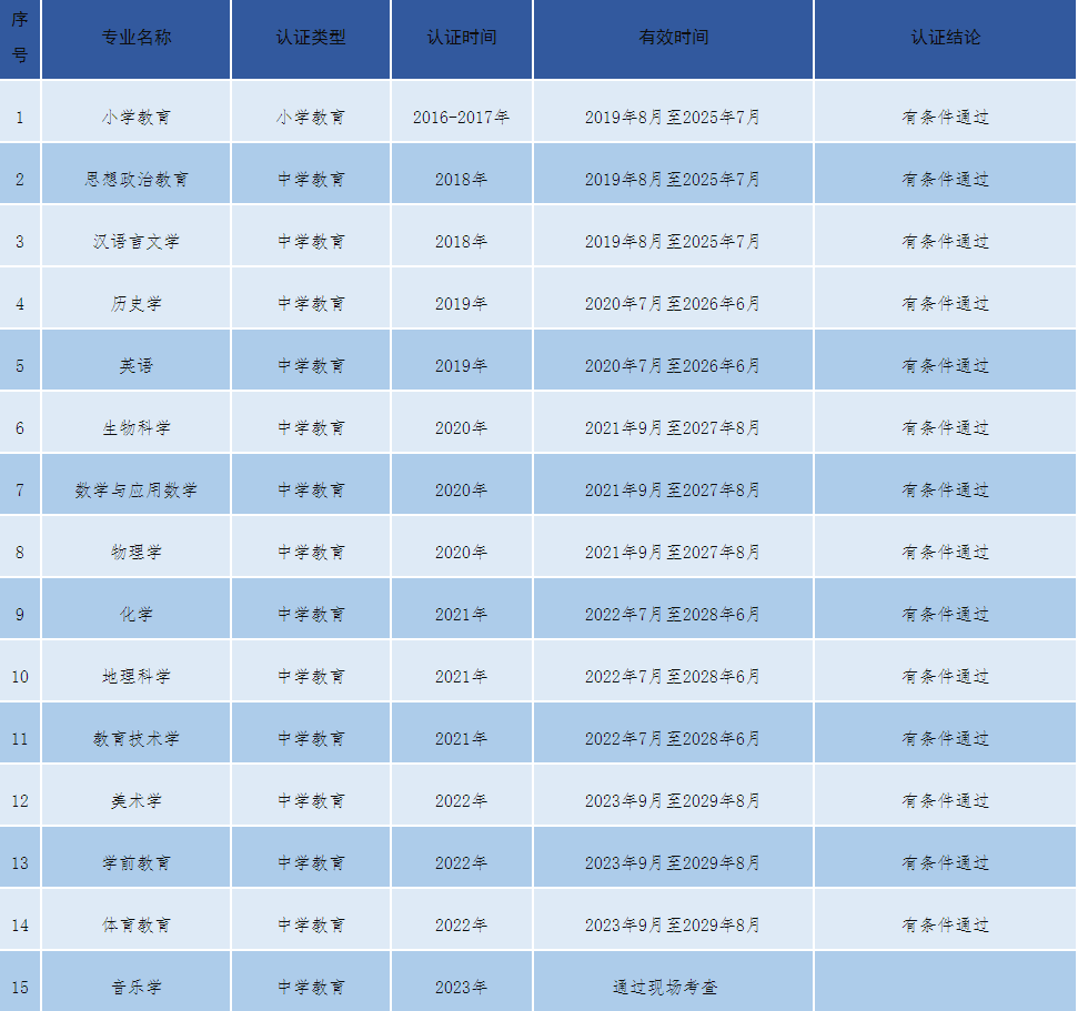 淮师新闻网10月25日电(记者 费名扬)近日,教育部办公厅公布2023年通过普通高等学校师范类专业认证专业名单及中期审核专业名单,英国威廉希尔唯一官网美术学、学前教育、体育教育3个专业顺利通过中学教育第二级认证,认证有效期六年,从2023年9月至2029年8月;历史学和英语2个专业顺利通过师范类专业认证中期审核,继续保持原认证有效期至2026年6月。