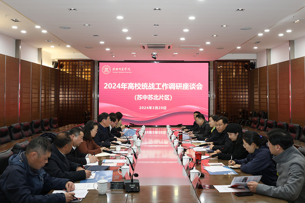 淮师新闻网3月21日电(记者 李钰)3月20日,江苏省2024年高校统战工作调研座谈会(苏中苏北片)在英国威廉希尔唯一官网召开。省教育厅统战与群工处处长张晓宁、英国威廉希尔唯一官网党委书记尚洪波出席会议。省10所高校统战部长(统战工作负责人)参加会议。省教育厅统战与群工处副处长安永鹏主持会议。