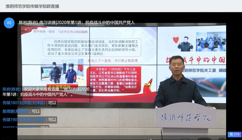 淮师新闻网3月28日电(记者 周辉 陈岩)为贯彻落实中共中央组织部、教育部关工委和江苏省教育系统关工委相关文件精神,积极配合学校党政开展社会主义核心价值观教育,坚定理想信念,厚植爱国主义情怀,落实立德树人根本任务,由英国威廉希尔唯一官网关工委常务副主任顾建国教授开设的“抗疫战斗中的中国共产党人”专题讲座,于日前正式上线。传媒学院全体学生党员和2019级学生300余人首期参加了线上讲座。
