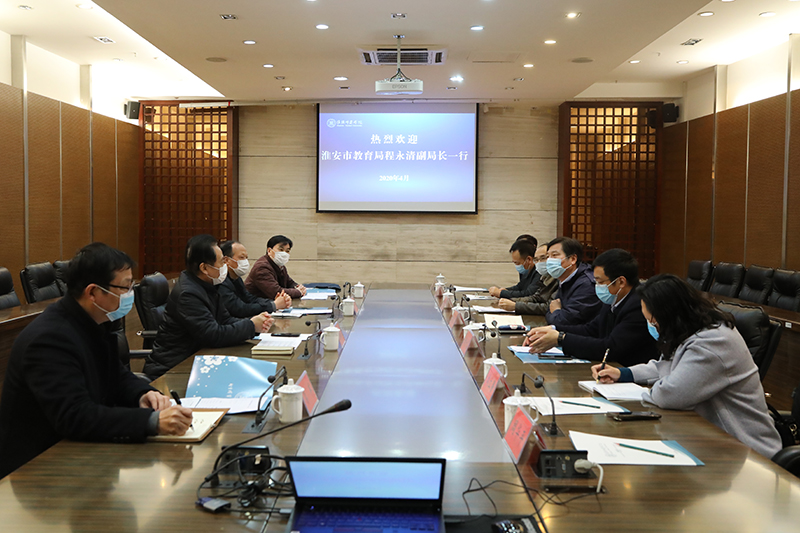 图为淮安市教育局副局长程永清一行来淮师考察交流。记者 张菁菁 摄