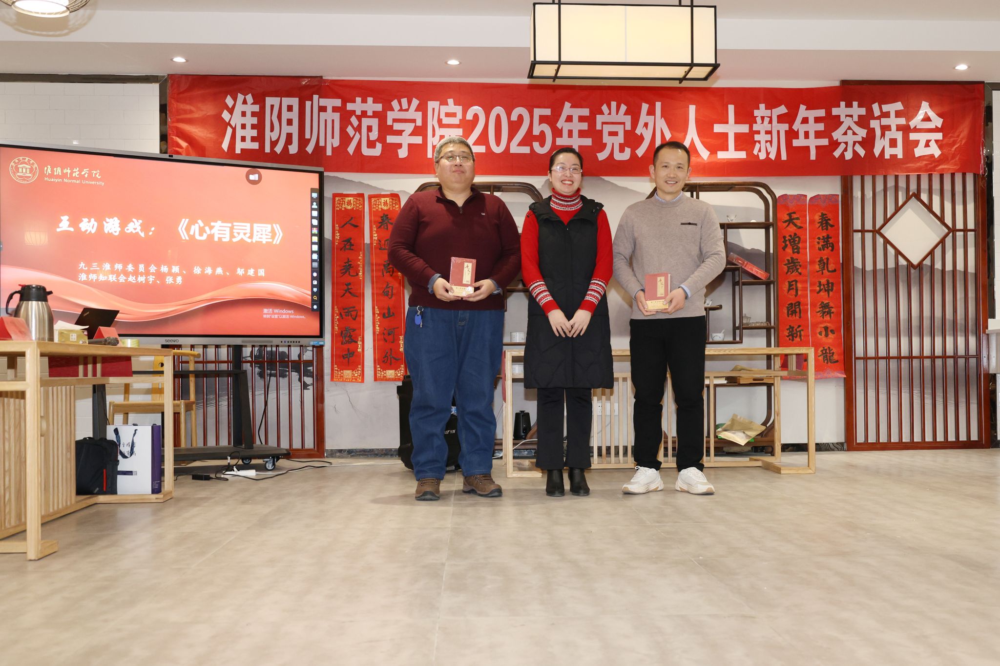 茶话会上,各党派团体代表表演了精彩的节目。独唱《灯火里的中国》、笛子独奏《帕米尔的春天》体现了大家对伟大祖国的无限热爱之情,三句半《统战工作暖人心》、合唱《朋友》、互动节目《心有灵犀》等,展现了在校党委的坚持领导下,党内外人士心往一处想、劲往一处使,团结协作、积极向上的精神风貌。