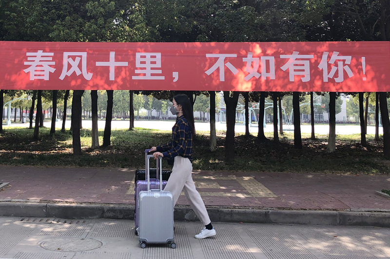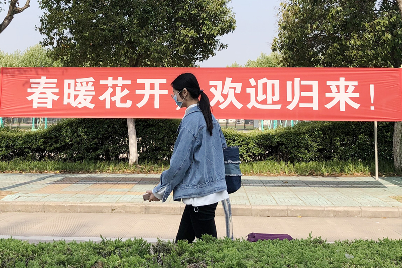 “刚进入校园就看到‘春暖花开,欢迎归来!’醒目的欢迎标语,很贴心,很温暖!”今天首位返校报到的教育科学学院穆远静同学兴奋地说。