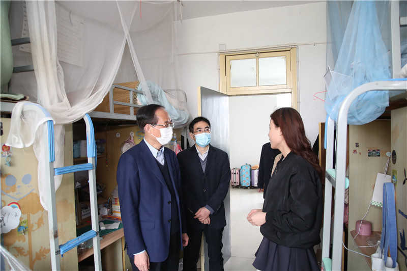 校党委书记朱汉清、校长焦富民实地察看了报到点、餐厅、宿舍等重点环节、重点区域,详细询问了解学生返校途中和返校后的相关情况,叮嘱同学们要加强疫情期间自我防护、合理规划好毕业期间各项安排,并要求各部门、各单位继续优化完善服务流程,切实为学生提供安全稳定的学习生活环境,确保学生返校工作顺利进行。