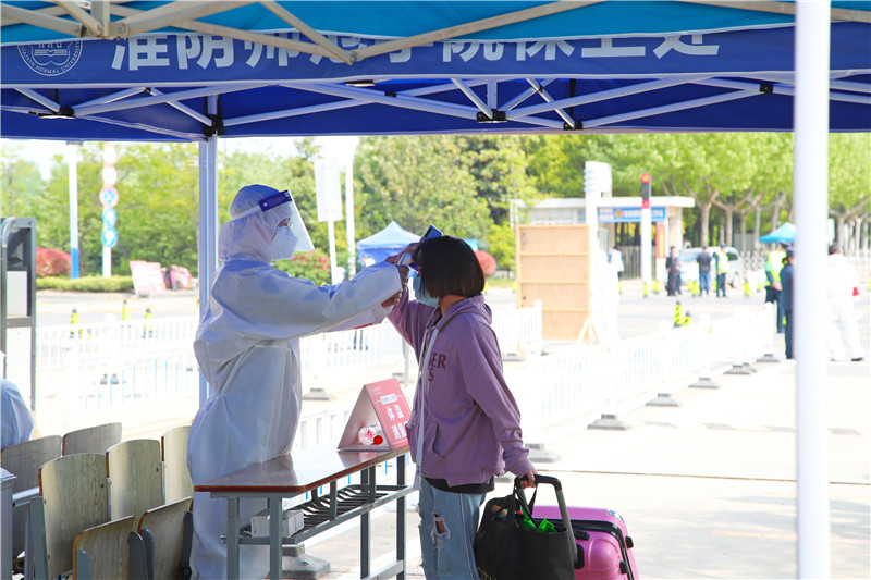 图为淮师迎来首批返校学生。记者 唐瑀 摄