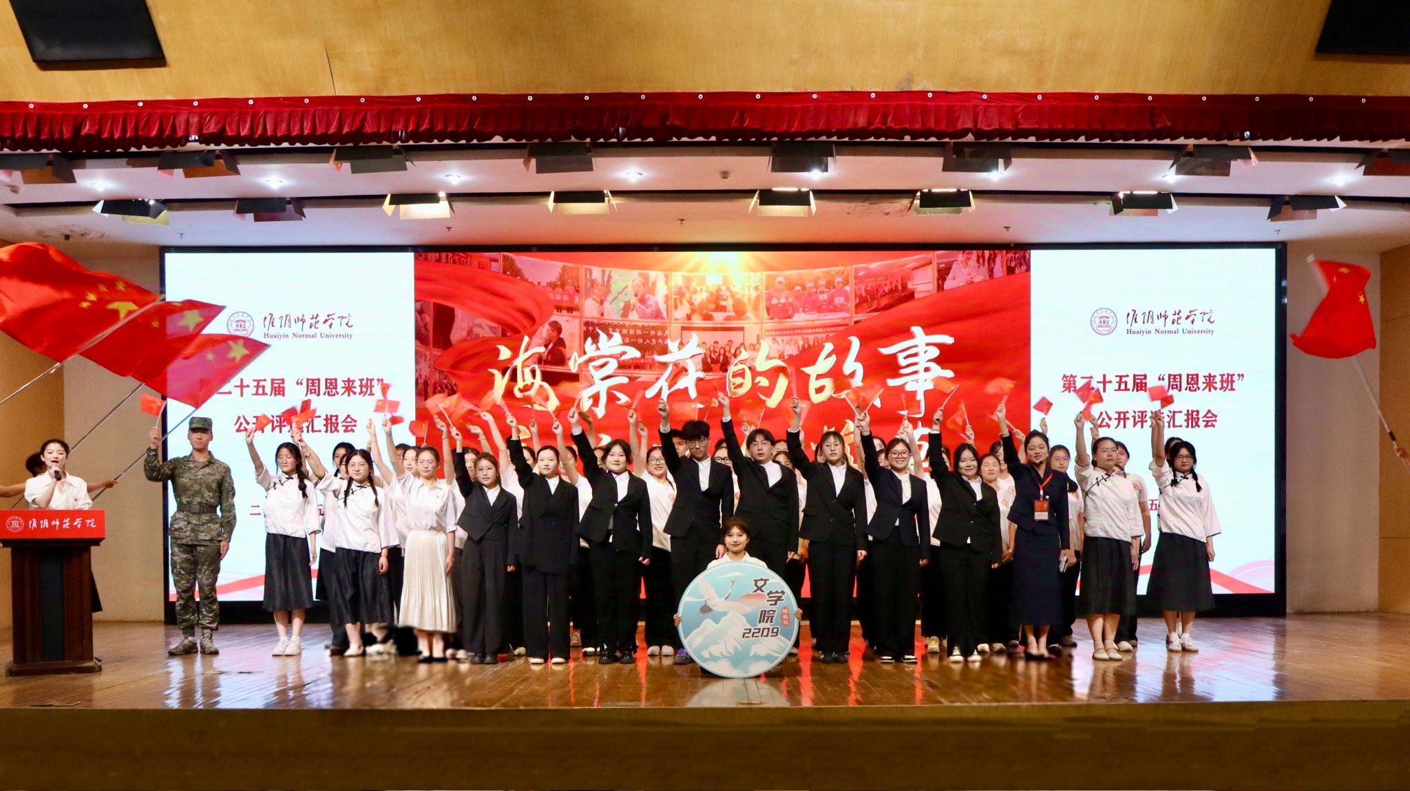经评审,文学院2209荣获“周恩来班”称号,美院2203、历史2203、计科2204、马院2202、新传2204荣获“周恩来班”提名奖”;化院2202、 教科2205、 物电2102 、数统2203、数统 2208、生科2204、音乐2207、化院 2302、外院2203、法学 2203、商院2308、地科2207、体院 2201、公管2301等班级荣获“周恩来班”创建奖”。