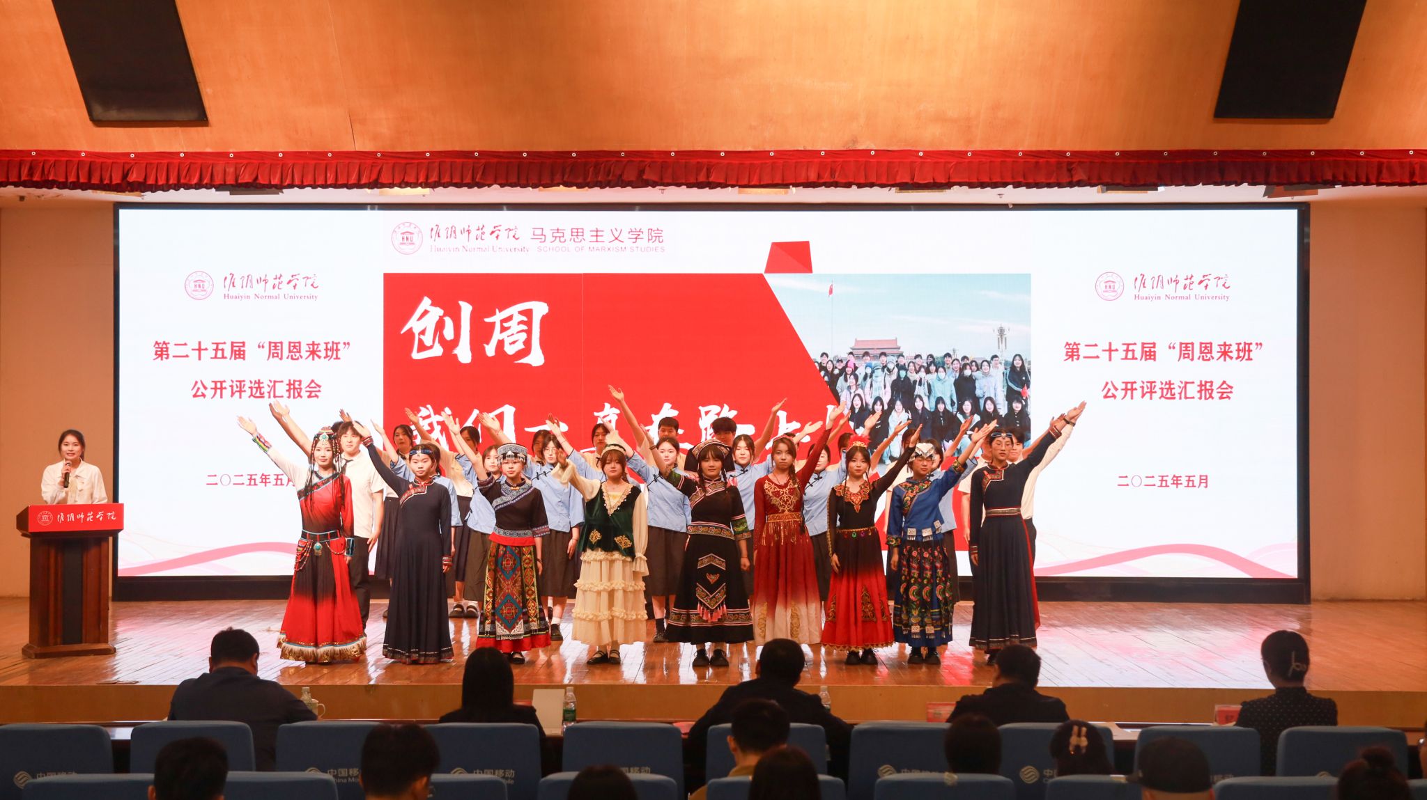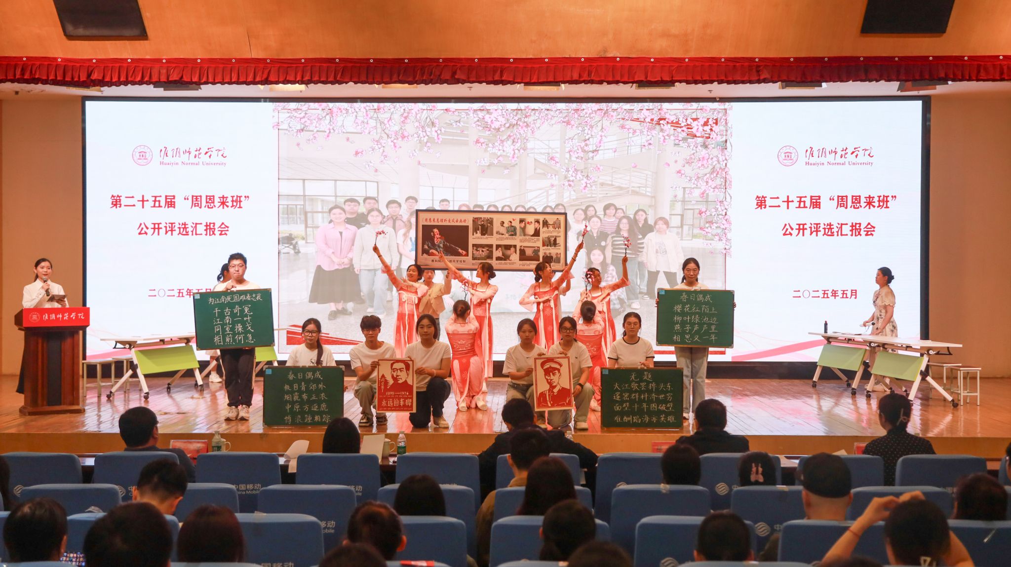10个入围班级围绕周恩来崇高精神风范,结合专业特色,以丰富多彩的形式展现了班级创建成果。教科院2205班秉持“厚德载物,笃行致远”的班训,沿着“绘·时空交融—教·知行合一—书·笔墨传薪”的周恩来精神风范学习实践线路稳步前行。美院2203班从绘画中吸收灵感,推出“点线面”创建模式,立志做有周恩来精神风范底色的淮师人。马院2202班努力在历史、现实与未来之间架起传承与奋进的桥梁,他们回溯历史,立足现实并展望未来。新传学院2204班以“追寻:足迹里的红色薪火;坚守:旗帜上的信仰烙印;躬行:星火下的知行答卷”为主线汇报了班级同学在周恩来崇高精神风范引领下的成长历程。物电学院2102班毕业之际不忘四年创周路,以“海棠映初心,青春续华章”为题讲述了班级同学追随周恩来总理的脚步,围绕“来时路”“脚下路”“未来路”开展的一系列创建活动。化院2202班把思想建设和学风建设相融合,打造“1个榜样,2大建设,3层深度”的特色创周思路,将周恩来班创建转化为日常学习生活的内在驱动力。数统学院2203班作为乡村定向师范生班,他们立志以周恩来崇高精神风范为指引,扎根家乡教育,用粉笔书写责任,用黑板传承信仰,让周恩来精神风范在乡村孩子心中筑巢。历史学院2203班以周恩来崇高精神风范为灯塔,将创建“周恩来班”作为践行“助人自助”专业使命的生动实践,他们在理论滋养中筑牢信仰之基,在专业实践中彰显为民情怀,在守正创新中续写时代担当。文学院2209班将创周故事喻为海棠生长,以“相遇——扎根——盛放——奉献”四个篇章展开生动演绎,同学们逐步深入学习周恩来崇高精神风范,如海棠扎根教育沃土般不断成长,逐渐挺拔坚韧,结出累累硕果。计科院2204班将创建工作与计算机专业相结合,逐渐形成了“数据加载、算法执行、性能优化、开源共享”学习实践线路,他们立志做“踏实求学,卓越进取”的IT人。
