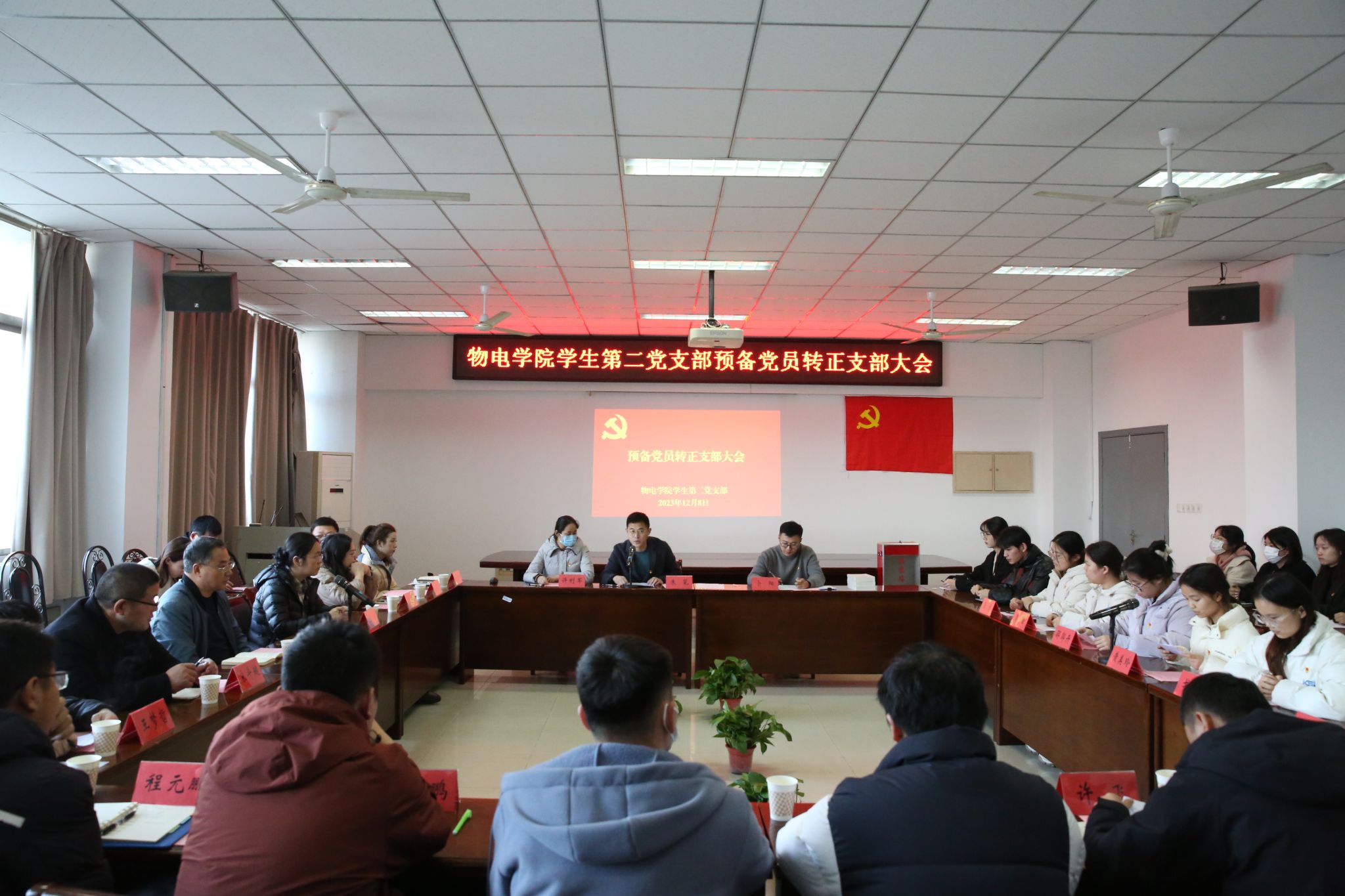 淮师新闻网12月12日电(记者 陈华庆)为进一步提升基层党建工作水平,推动全校党支部工作标准化、规范化,12月8日下午,物电学院在理北108会议室举办预备党员转正支部大会全校观摩会。校党委组织部副部长王涛、组织科科长韩正宝以及全校二级党组织的组织员参加此次观摩学习活动。观摩会由物电学院学生第二党支部书记朱笔同志主持。