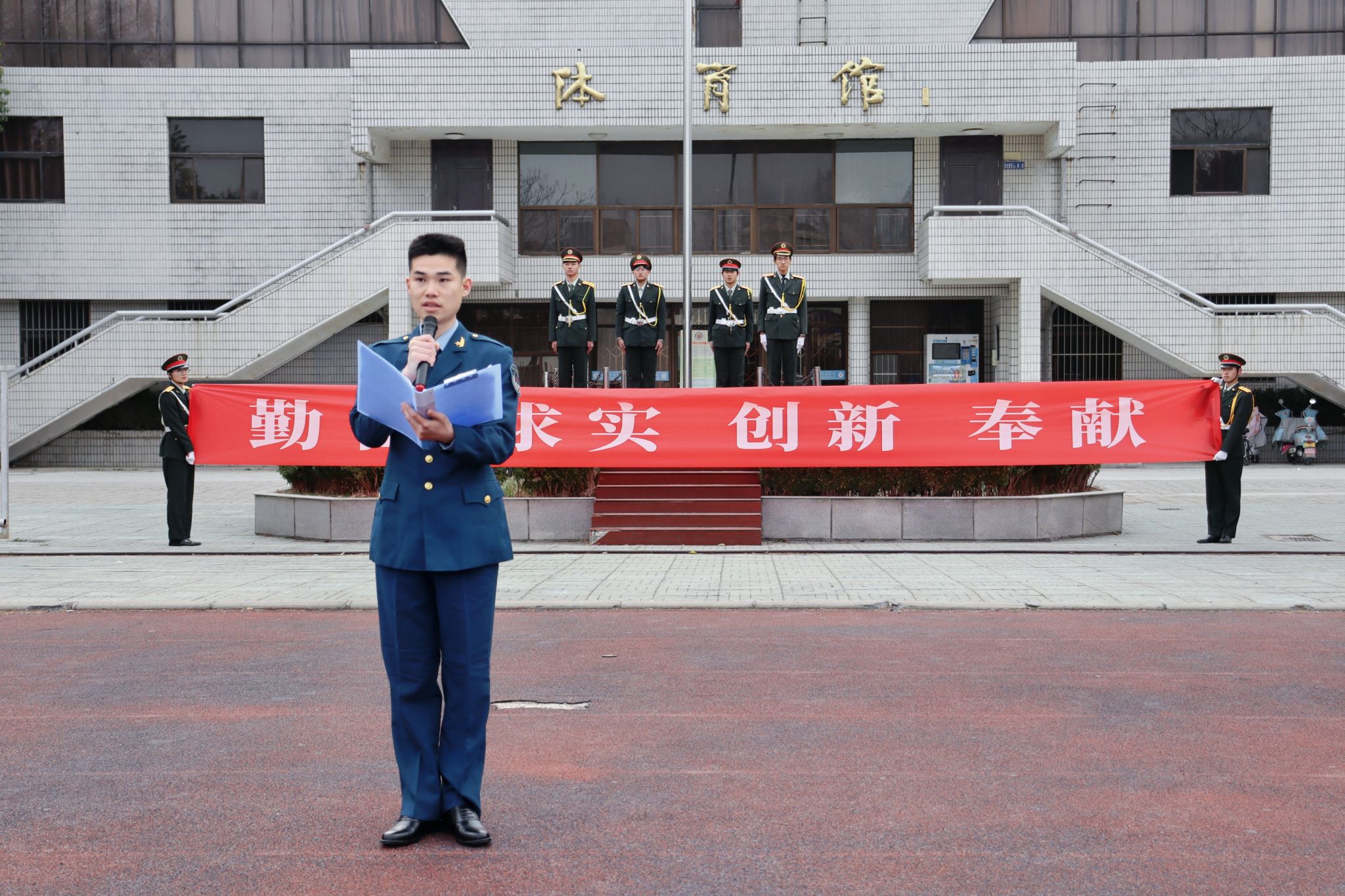3月18日,商学院在交通路校区体育场举行“向国旗敬礼”主题教育暨“勤奋 求实 创新 奉献”主题教育月启动仪式。学院党政领导班子成员,党政办、学工办全体老师,学生干部、党员代表及2023级全体学生参加本次活动。商学院党委副书记叶姗姗主持活动。