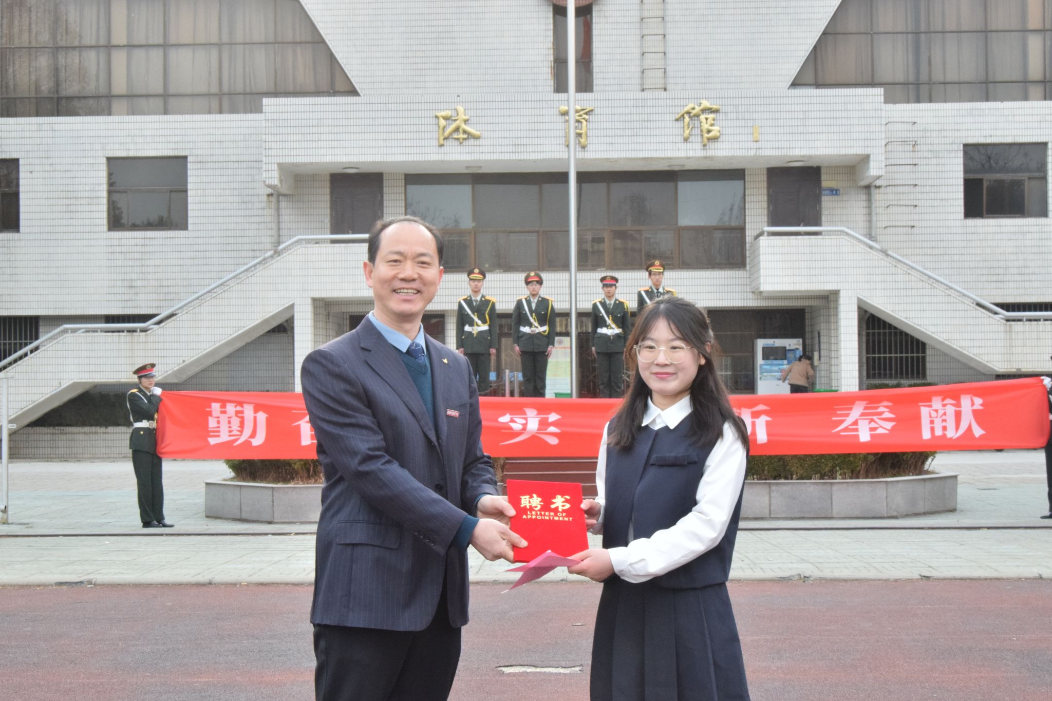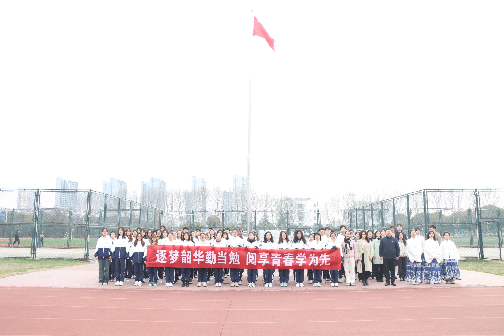 逐梦韶华勤当勉,阅享青春学为先。为深化“勤奋 求实 创新 奉献”主题教育月,3月18日,文学院在长江路校区田径场举行“向国旗敬礼”主题教育活动。文学院全体辅导员,2301“更生班”、2305定向师范班全体同学和2021级新党员参加了本次活动。文学院党委副书记管婷婷主持活动。