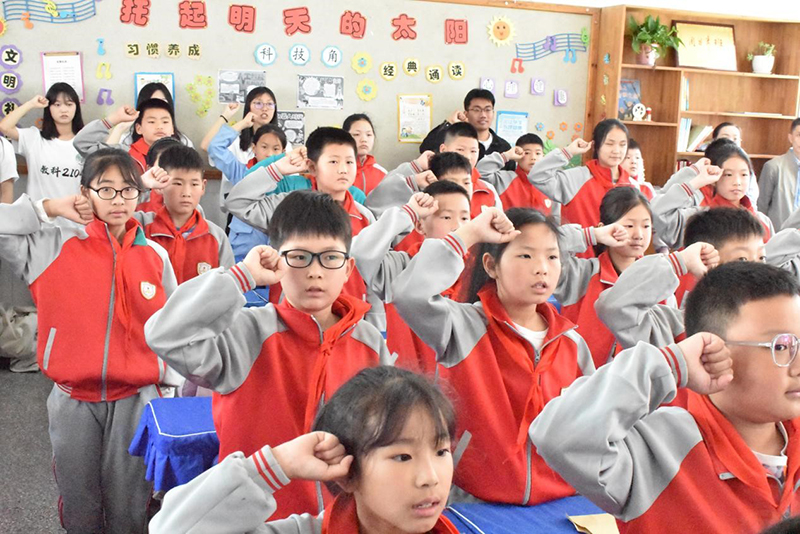 图为教科院学生带领少先队员集体宣誓。 记者 段锦誉 摄