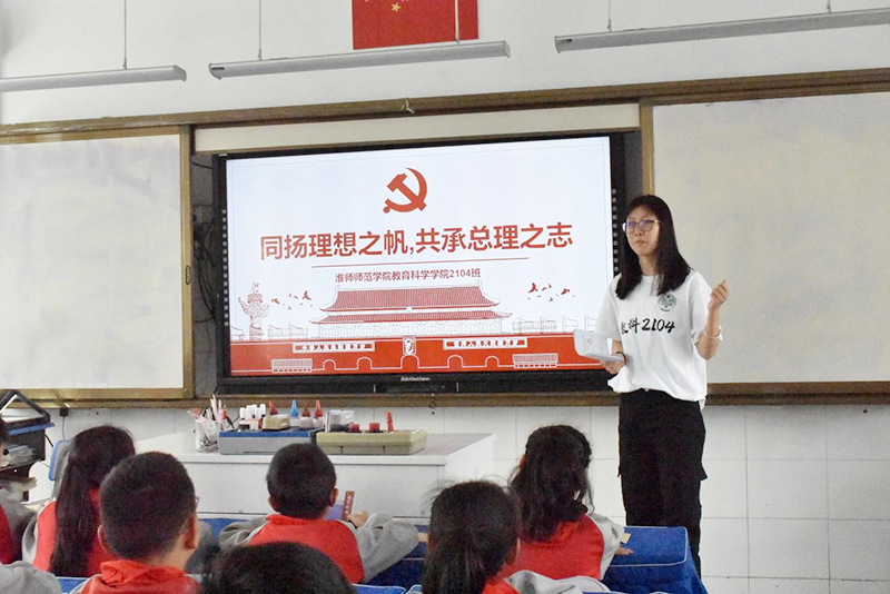 活动中,教科2104班与周恩来红军小学四(9)班举行了结对仪式,并向四(9)班学生赠送周恩来崇高精神风范相关图书。仪式后,教科院同学以“同扬理想之帆,共承总理之志”为主题,声情并茂地宣讲了周恩来总理波澜壮阔的一生和崇高精神风范品质。少先队员们也积极分享了作为小学生如何在新时代传承和发扬周恩来崇高精神风范。双方同学在热烈的讨论中互相学习、共同进步。最后教科院全体同学与少先队员们共同宣誓,表示将继续弘扬总理之志,不忘初心使命,为实现中华民族伟大复兴贡献自身力量。