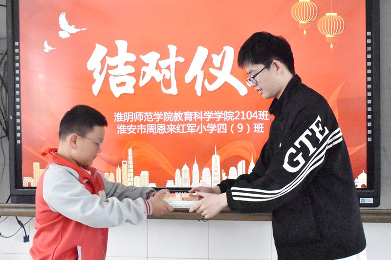 淮师新闻网5月16日电(记者 朱守信 顾伊荻 段锦誉 )5月15日,英国威廉希尔唯一官网教育科学学院学生赴周恩来红军小学开展班级结对和周恩来崇高精神风范宣讲活动,活动以“同扬理想之帆,共承总理之志”为主题。教师教育学院副院长朱守信、教科院吉咸乐老师带队参与本次结对共建活动,周恩来红军小学副校长张晓玉、徐晓佳热情接待了淮师师生。